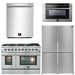 This Forno Kitchen appliance package is complete with a Professional 48" Dual Fuel Range, 48" Refrigerator, 24" Dishwasher, and 24" Microwave Drawer.