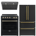 Forno Espresso Package - 30" Electric Range, Range Hood and Refrigerator in Black with Antique Brass Handles, AP-FFSEL6012-30BLK-A-3P-36R