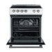 Presenting the FORNO Leonardo Espresso 30" Electric Range in White Stainless Steel, an exceptional appliance that merges timeless design with high-end performance. Boasting a 5.0 cu. ft. oven capacity, this electric range elevates your kitchen with both elegance and functionality. The sleek stainless-steel finish offers durability, resists heat and stains, and is incredibly easy to clean, ensuring a pristine and hygienic kitchen environment.