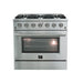 Forno Package - 36 Inch Gas Range, Wall Mount Range Hood, Refrigerator, Microwave Drawer, Dishwasher, AP-FFSGS6244-36-W-8