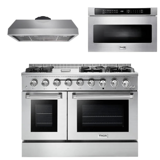 Thor Kitchen Package - 48" Gas Range, Range Hood, Microwave, AP-LRG4807U-5
