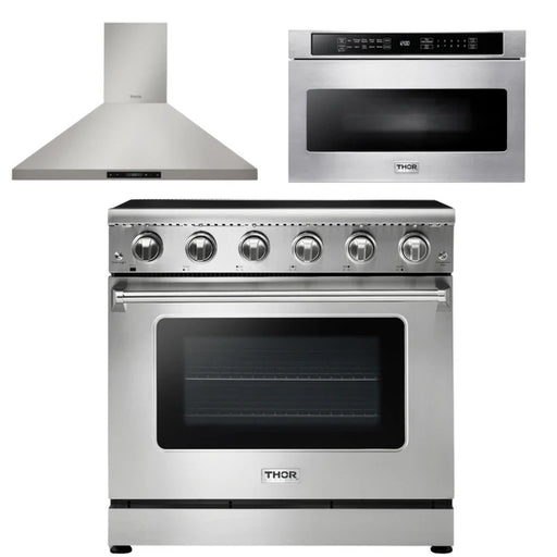 Thor Kitchen Package - 36" Electric Range, Range Hood, Microwave, AP-HRE3601-5