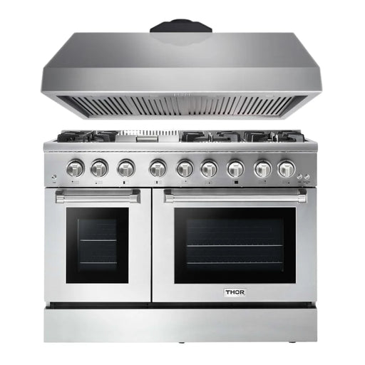 Thor Kitchen Package - 48 inch Propane Dual Fuel Range, Range Hood, AP-HRD4803ULP