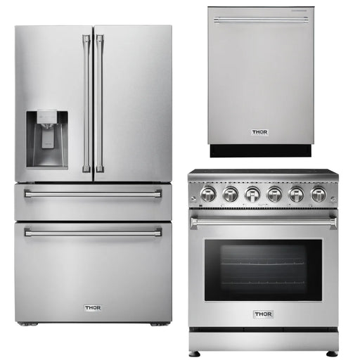 Thor Kitchen Package - 30" Electric Range, Refrigerator with Water and Ice Maker, Dishwasher, AP-HRE3001-9