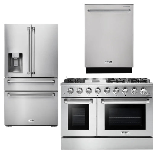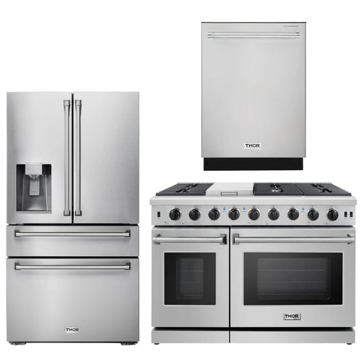 Thor Kitchen Package - 48" Gas Range, Refrigerator with Water and Ice Dispenser, Dishwasher, AP-HRG4808U-9