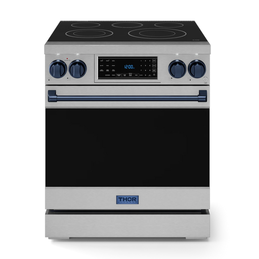 Gordon Ramsay by THOR Kitchen Package - 30" Electric Range, 30" Refrigerator with Ice Maker and Dishwasher in Stainless Steel with Navy Blue Accents, AP-RSE30-BLU-1