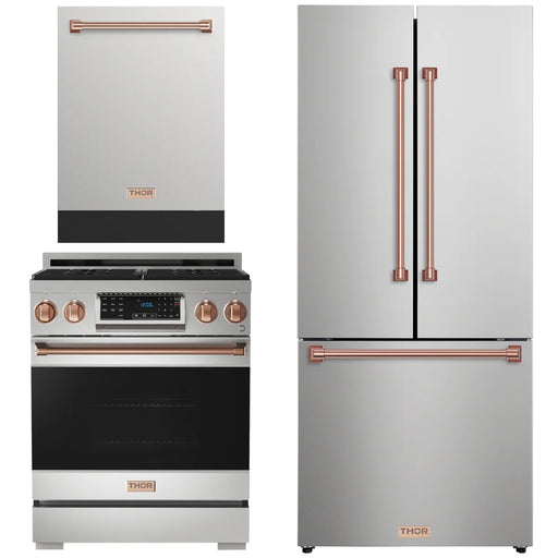 Gordon Ramsay by THOR Kitchen Package - 30" Gas Range, 30" Refrigerator with Ice Maker and Dishwasher in Stainless Steel with Rose Gold Accents, AP-RSG30-RSG-1