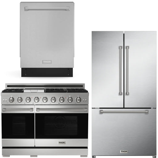 Gordon Ramsay by THOR Kitchen Package - 48" Gas Range, 36" Refrigerator with Ice Maker and Dishwasher in Stainless Steel, AP-RSG48ELP-2