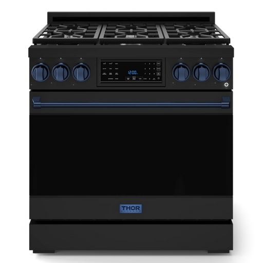 Gordon Ramsay by THOR Kitchen Package - 36" Gas Range, 36" Refrigerator with Ice Maker and Dishwasher in Black Matte with Navy Blue Accents, AP-RSG36BLP-BLU-2