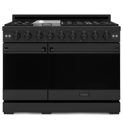 Gordon Ramsay by THOR Kitchen Package - 48" Gas Range, 30" Refrigerator with Ice Maker and Dishwasher in Black Matte with Black Accents, AP-RSG48EB-1