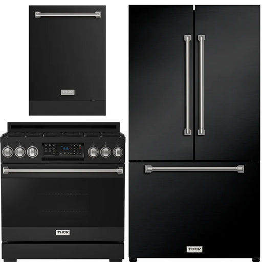 Gordon Ramsay by THOR Kitchen Package - 36" Gas Range, 36" Refrigerator with Ice Maker and Dishwasher in Black Matte with Stainless Steel Accents, AP-RSG36BLP-SS-2