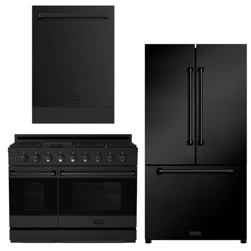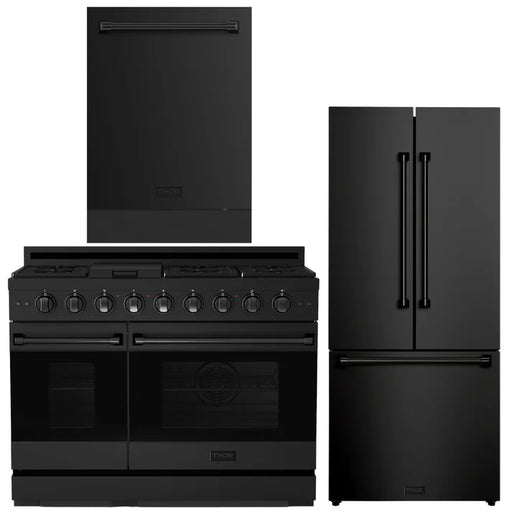 Gordon Ramsay by THOR Kitchen Package - 48" Gas Range, 36" Refrigerator with Ice Maker and Dishwasher in Black Matte with Black Accents, AP-RSG48EB-2