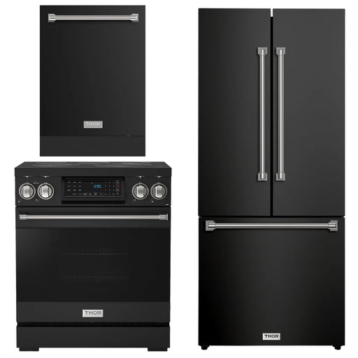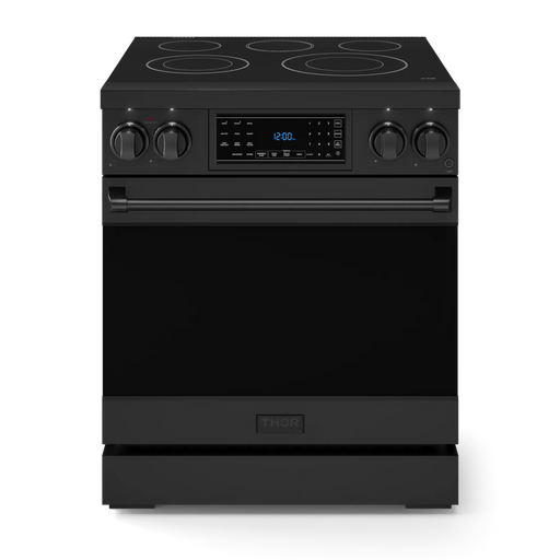 Gordon Ramsay by THOR Kitchen Package - 30" Electric Range, 30" Refrigerator with Ice Maker and Dishwasher in Black Matte with Black Accents, AP-RSE30B-1