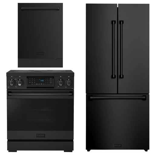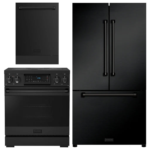 Gordon Ramsay by THOR Kitchen Package - 30" Electric Range, 36" Refrigerator with Ice Maker and Dishwasher in Black Matte with Black Accents, AP-RSE30B-2