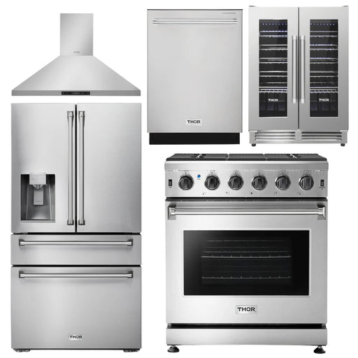 Thor Kitchen Package - 30" Propane Gas Range, Range Hood, Refrigerator, Dishwasher, Wine Cooler, AP-TRG3001LP-4