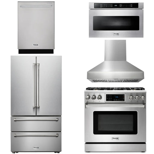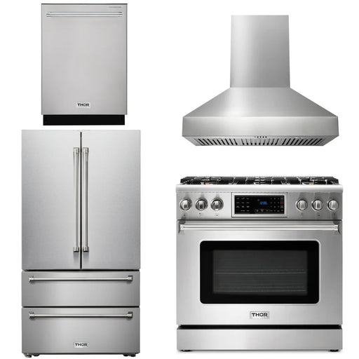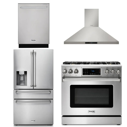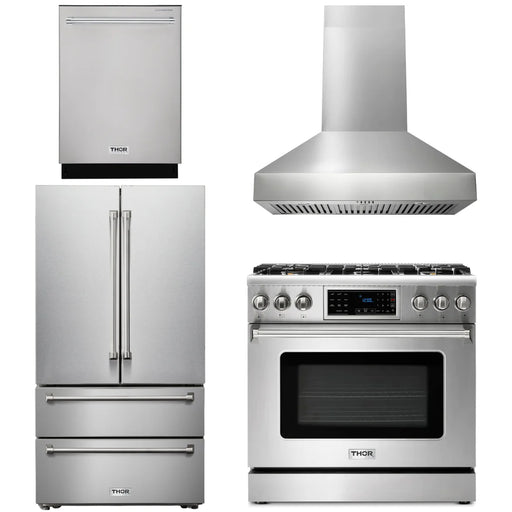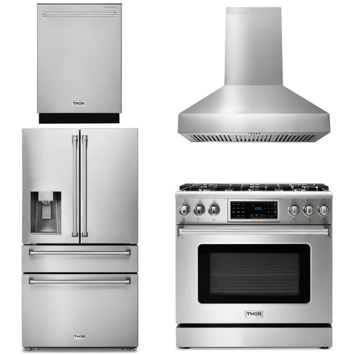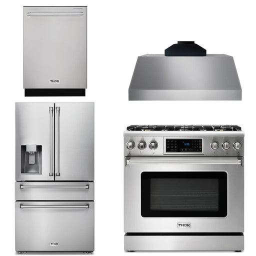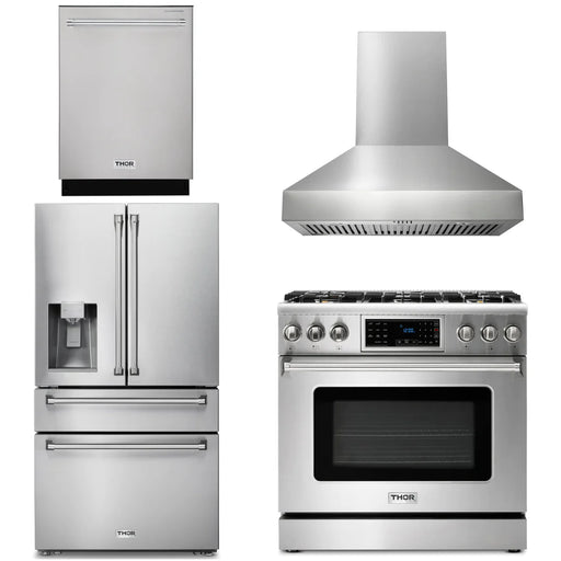 Thor Kitchen Package - 36" Gas Range, Range Hood, Refrigerator, Dishwasher, AP-TRG3601-3