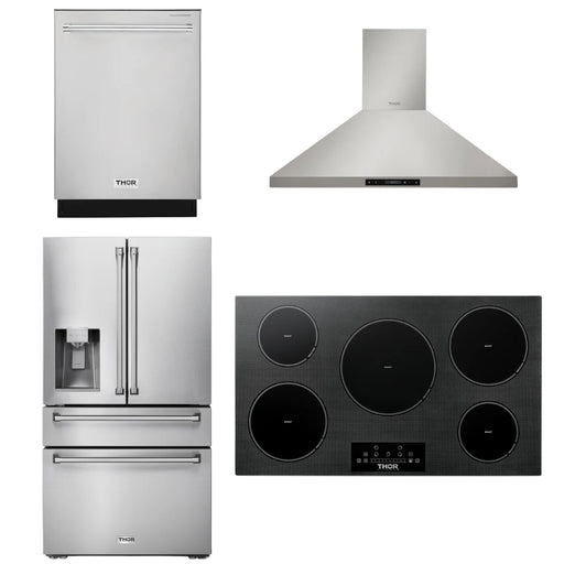 Thor Kitchen Package - 36" Induction Cooktop, Range Hood, Refrigerator with Water and Ice Dispenser, Dishwasher, AP-TIH36-10