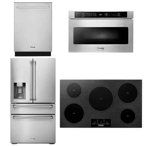 Thor Kitchen Package - 36" Induction Cooktop, Microwave, Refrigerator with Water and Ice Dispenser, Dishwasher, AP-TIH36-12