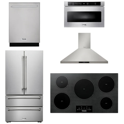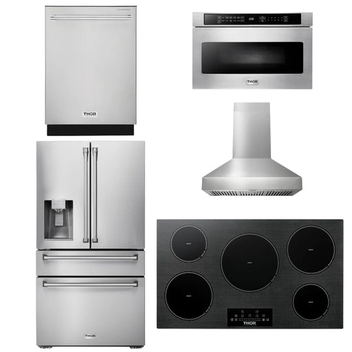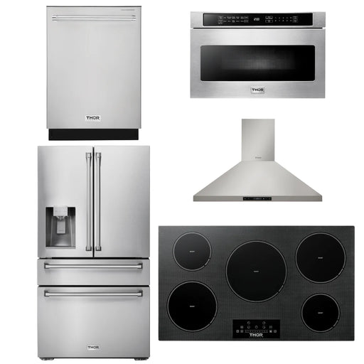 Thor Kitchen Package - 36" Induction Cooktop, Range Hood, Microwave, Refrigerator, Dishwasher, AP-TIH36-W-5