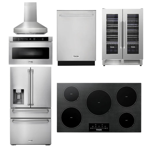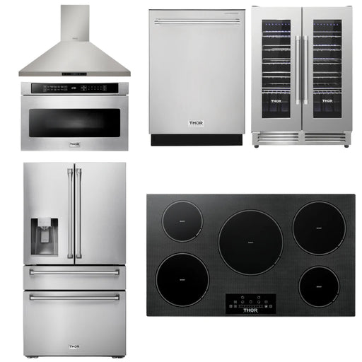 Thor Kitchen Package - 36" Induction Cooktop, Range Hood, Microwave, Refrigerator, Dishwasher, Wine Cooler, AP-TIH36-W-6