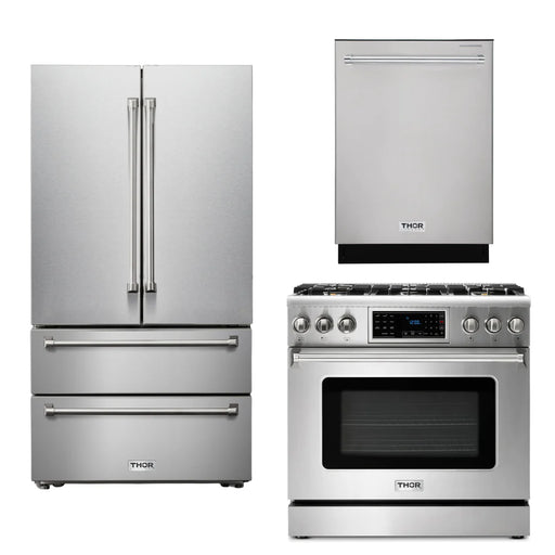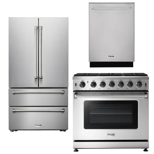 Thor Kitchen Package - 36" Propane Range, Refrigerator, Dishwasher, AP-LRG3601ULP-15