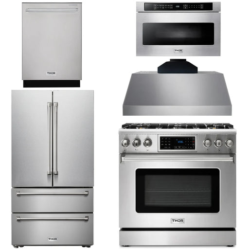 Thor Kitchen Package - 36" Propane Gas Range, Range Hood, Microwave, Refrigerator, Dishwasher, AP-TRG3601LP-C-5