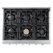 The THOR Kitchen 36" Pro-Style Propane Gas Range Top, HRT3618ULP, combines professional-grade performance with sleek design. Equipped with 6 sealed burners and a black porcelain drip pan, this rangetop simplifies cleanup. Its continuous cast iron grates provide optimal heat retention, while the automatic re-ignition feature ensures reliable operation. The ABS controller knobs are designed for smooth, precise control.