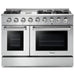 Elevate your kitchen with the THOR Kitchen 48-inch Freestanding Gas Range (HRG4808U). Designed for culinary enthusiasts, this professional-grade range features a spacious 6.7 cu. ft. oven equipped with a commercial convection fan, ensuring even heat distribution for superior cooking performance. The cooktop includes six sealed burners, delivering a combined output of 99,000 BTUs to meet the demands of any cooking style. Durable cast iron flat cooking grates provide stability and accommodate larger cookware with ease. A high-intensity 15,000 BTU griddle further enhances the versatility of this premium appliance.
